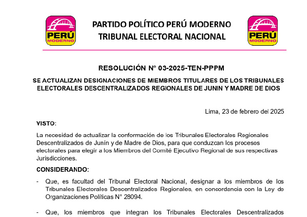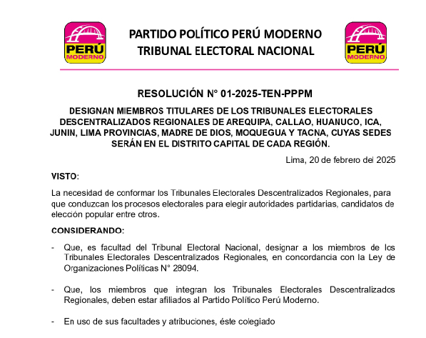 Resolución del Tribunal Electoral Nacional No. 001-2025-TEN-PPPM