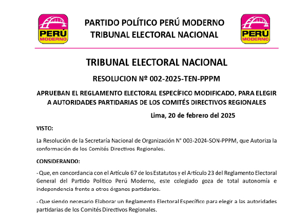 Resolución del Tribunal Electoral Nacional No. 002-2025-TEN-PPPM